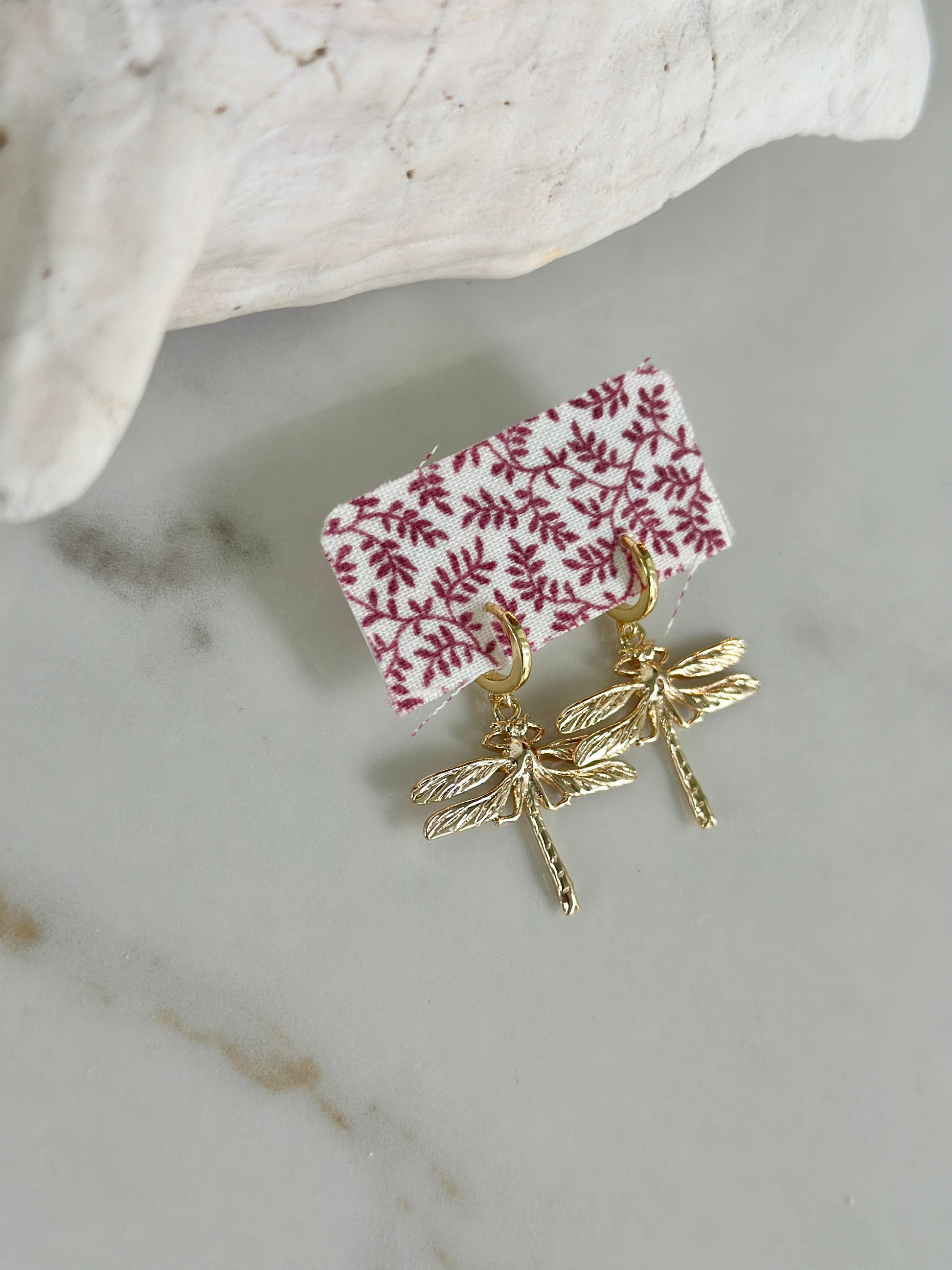 The Driftwood Dragonfly Hoops bring a touch of golden grace to your everyday style. With intricate wings and a lightweight design, these dainty dragonfly charms catch the light beautifully — just like sunlight dancing over the water. About an inch and a half long, they’re the perfect mix of natural elegance and easy wear.