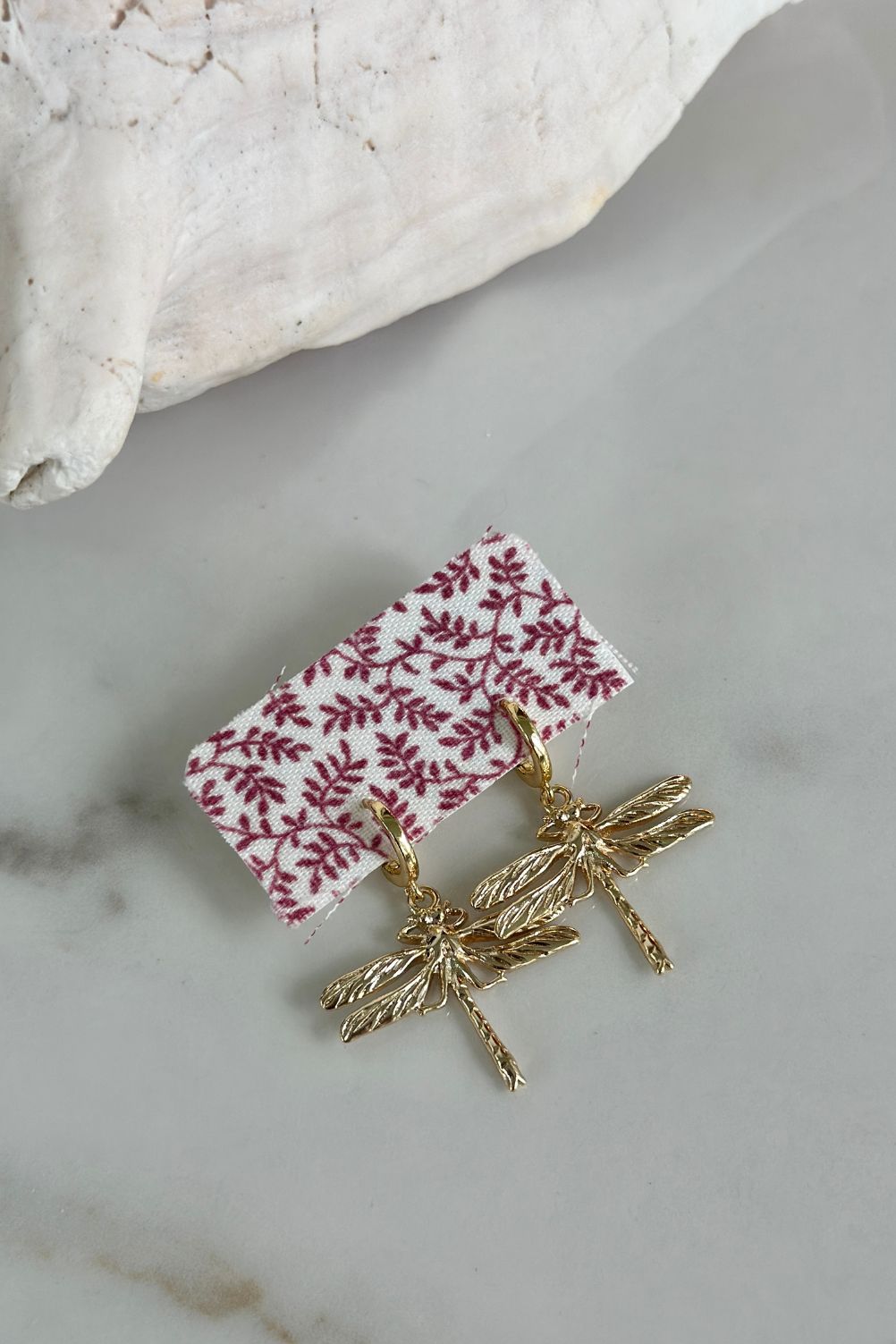 The Driftwood Dragonfly Dangle Hoops bring a touch of golden grace to your everyday style. With intricate wings and a lightweight design, these dainty dragonfly charms catch the light beautifully — just like sunlight dancing over the water. About an inch and a half long, they’re the perfect mix of natural elegance and easy wear.