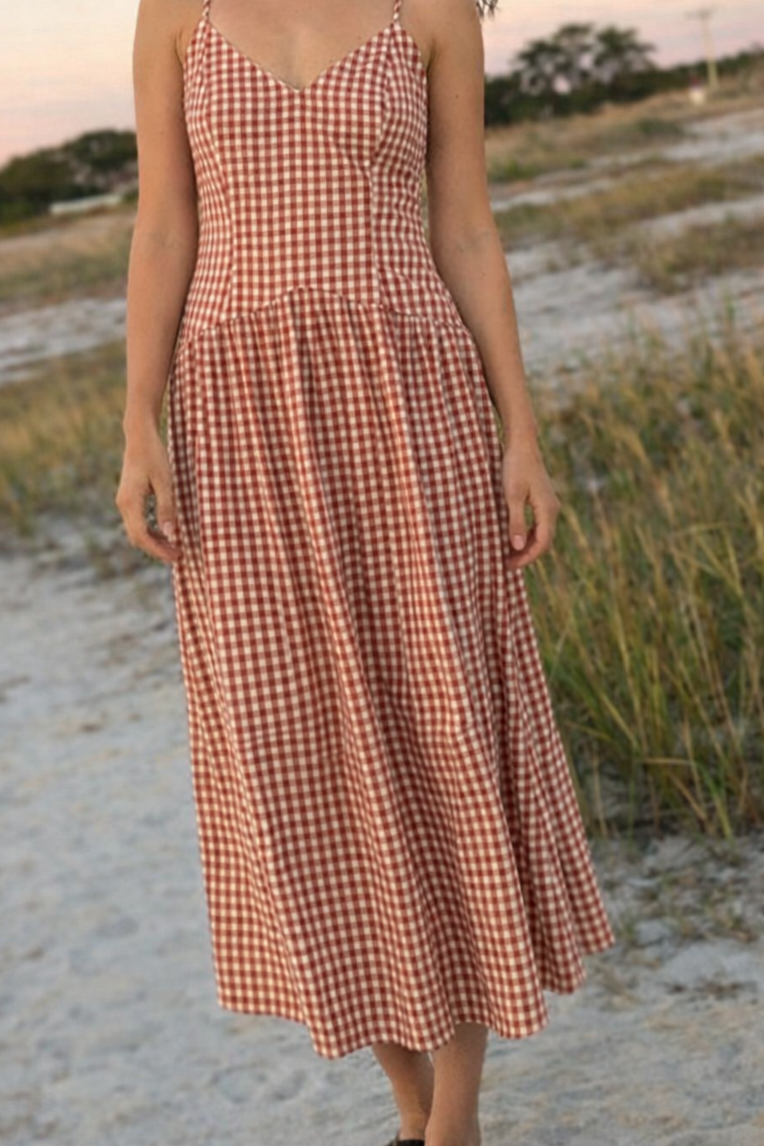 #ginghamdress #camidress #mididress #summersdress #springdress #resortwear #vacationdress #femininedress #lightweightdress #wovendress #casualdress #womensfashion